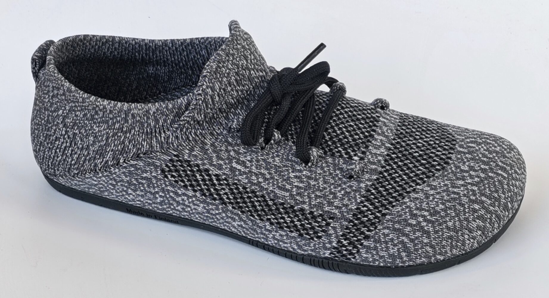 2,5 mm kaksikerroksinen pohja on sulatettu päälliseen, luoden erittäin joustavan ja vahvan sidoksen, joka mahdollistaa luonnollisen liikkeen ja joustavuuden. Leveän kärkiosan ja erittäin joustavan ja kevyen muotoilun ansiosta nämä kengät sopivat täydellisesti kaikille, jotka arvostavat mukavuutta ja liikkuvuutta. Valmistettu Suomessa neulotusta kierrätetystä polyesterista, nämä kengät ovat 100% vegaanisia ja ympäristöystävällisiä.